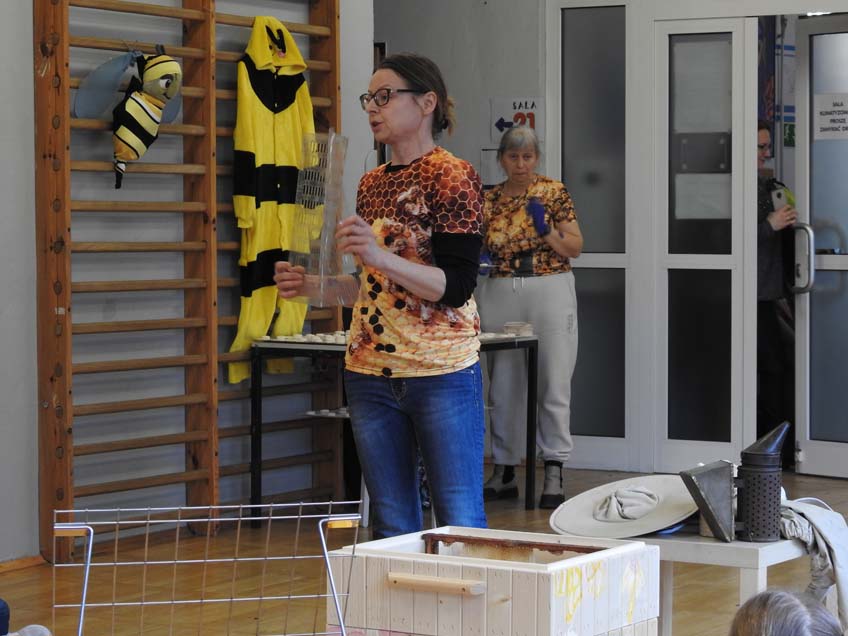 Niestety podczas ostatniej powodzi jej pasieka uległa zniszczeniu! W naszej placówce odbyła się wielka zbiórka, dzięki której Pani Agata mogła zakupić nowy ul, który mogliśmy podziwiać na warsztatach. Na wiosnę zamieszkają w nim pszczółki.